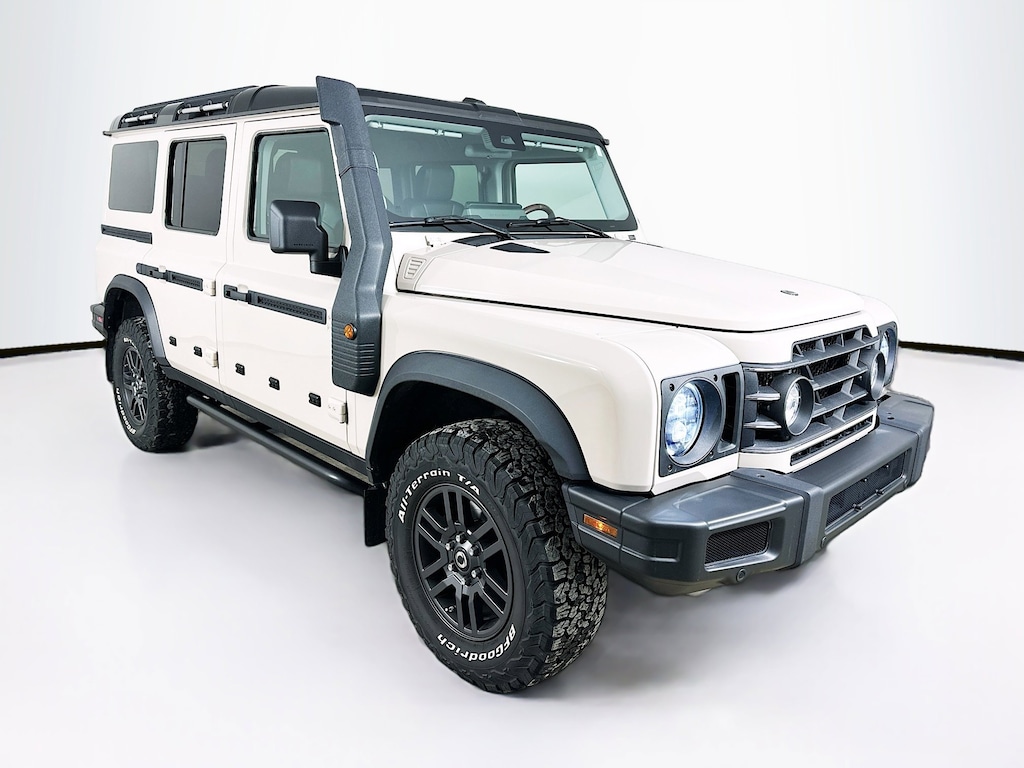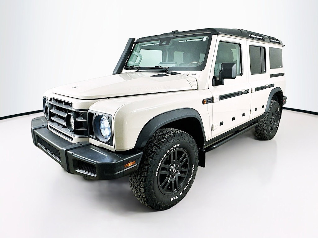 CARFAX One-Owner. Clean CARFAX. 2024 INEOS Grenadier Base 4WD 8-Speed Automatic 3.0L I6 18" Alloy Wheels, 4 Speakers, 4-Wheel Disc Brakes, ABS brakes, Air Conditioning, AM/FM radio, Anti-whiplash front head restraints, Auto High-beam Headlights, Automatic temperature control, Bodyside moldings, Bumpers: body-color, Driver door bin, Dual front impact airbags, Dual front side impact airbags, Electronic Stability Control, Exterior Parking Camera Rear, Front anti-roll bar, Front Bucket Seats, Front Center Armrest, Front reading lights, Heated door mirrors, Illuminated entry, Knee airbag, Leather Seat Trim, Leather steering wheel, Low tire pressure warning, Navigation System, Occupant sensing airbag, Outside temperature display, Overhead airbag, Overhead console, Panic alarm, Passenger door bin, Power door mirrors, Power steering, Power windows, Radio: Central Control System w/Navigation, Rear anti-roll bar, Rear fog lights, Rear window defroster, Rear window wiper, Remote keyless entry, Security system, Speed control, Speed-sensing steering, Split folding rear seat, Steering wheel mounted audio controls, Tachometer, TBD Axle Ratio, Telescoping steering wheel, Tilt steering wheel, Traction control, Trip computer, Variably intermittent wipers.