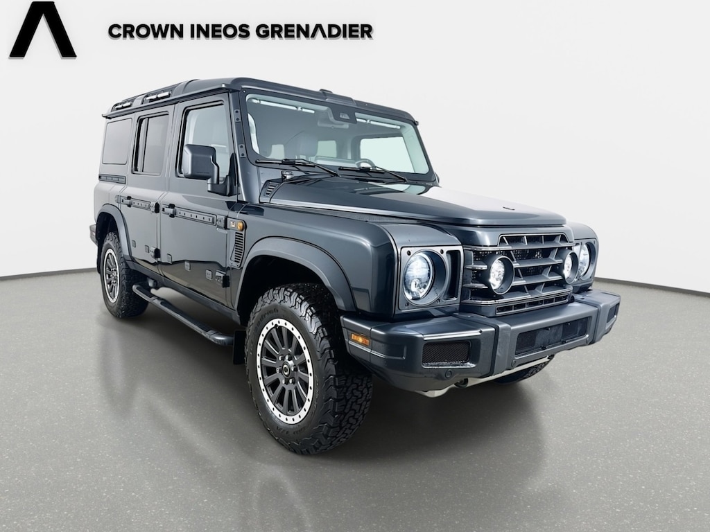 CARFAX One-Owner. Clean CARFAX. 2024 INEOS Grenadier Fieldmaster Edition Fieldmaster Edition Donny Gray Metallic 4WD 8-Speed Automatic 3.0L I6 18" Alloy Wheels, Class III 2" NAS Tow Hitch & Electrics, Exterior Parking Camera Rear, Navigation System, Power windows, 4 Speakers, 4-Wheel Disc Brakes, ABS brakes, Air Conditioning, AM/FM radio, Anti-whiplash front head restraints, Auto High-beam Headlights, Automatic temperature control, Bodyside moldings, Bumpers: body-color, Driver door bin, Dual front impact airbags, Dual front side impact airbags, Electronic Stability Control, Front anti-roll bar, Front Bucket Seats, Front Center Armrest, Front reading lights, Heat Reflective Privacy Glass, Heated door mirrors, Illuminated entry, Knee airbag, Leather Seat Trim, Leather steering wheel, Low tire pressure warning, Occupant sensing airbag, Outside temperature display, Overhead airbag, Overhead console, Panic alarm, Passenger door bin, Power door mirrors, Power steering, Radio: Central Control System w/Navigation, Rear anti-roll bar, Rear fog lights, Rear window defroster, Rear window wiper, Remote keyless entry, Security system, Speed control, Speed-sensing steering, Split folding rear seat, Steering wheel mounted audio controls, Tachometer, TBD Axle Ratio, Telescoping steering wheel, Tilt steering wheel, Traction control, Trip computer, Variably intermittent wipers, 18" Alloy Wheels, Class III 2" NAS Tow Hitch & Electrics, Exterior Parking Camera Rear, Navigation System, Power windows.